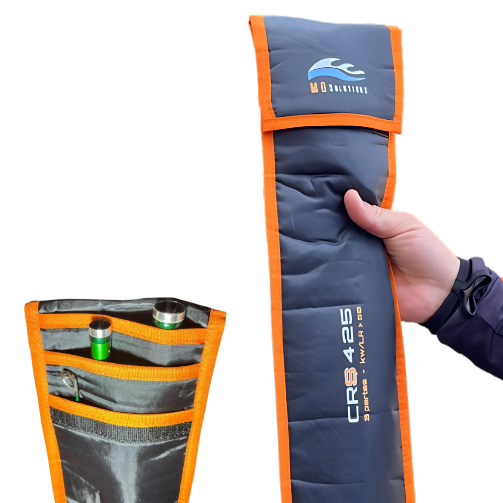 Bolsa para caniço individual, desenvolvida com exclusividade pela MG SOLUTIONS. Fabricada em nylon 600, possui revestimento interno com espuma de 6 mm para maior proteção. Conta com 3 divisórias internas, ideais para caniços em 3 partes, e é compatível com passadores KW/LR de até 50 mm.