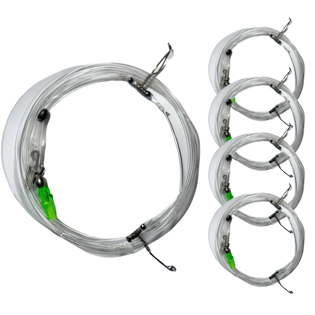 O Chicote Competição HRC é ideal para pesca de beira. Feito em nylon resistente, suporta até 7 kg e conta com destorcedor de alta qualidade, nó de correr ajustável e configuração para dois anzóis com rotor bico de pato P.